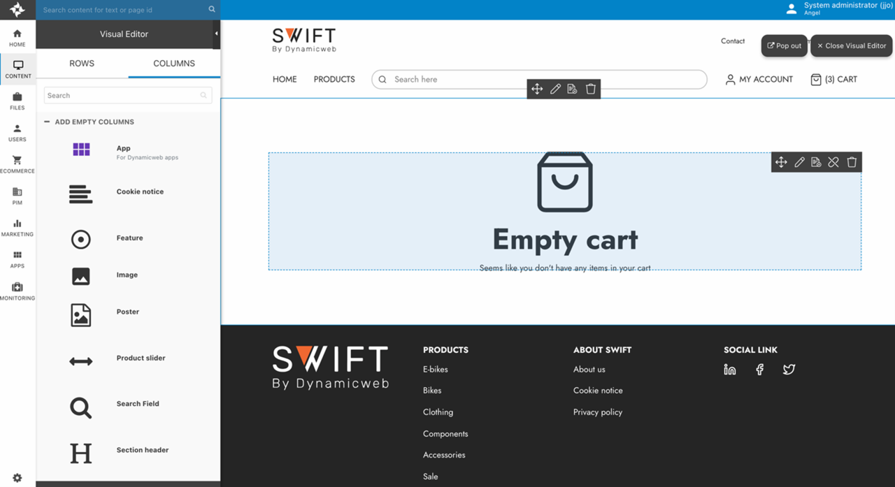 The subpage Empty cart is a regular content page – you can use the visual editor to create whichever content you want, here a Feature-column with an icon and a text (Figure 4.1).