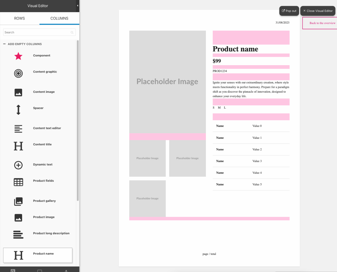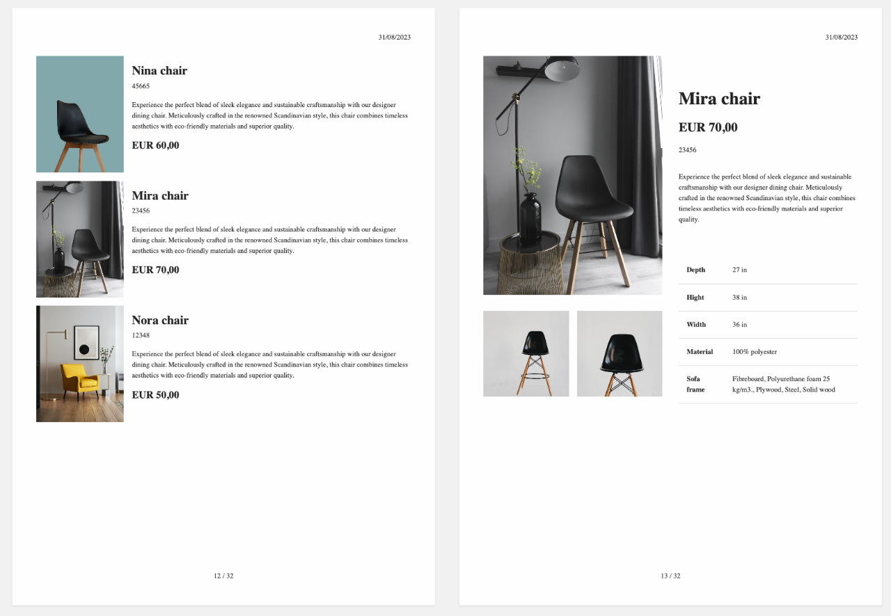 Publication is a tool to set up designs for printable catalogs containing content pages, data sheets, price lists based on already existing product information from DynamicWeb.